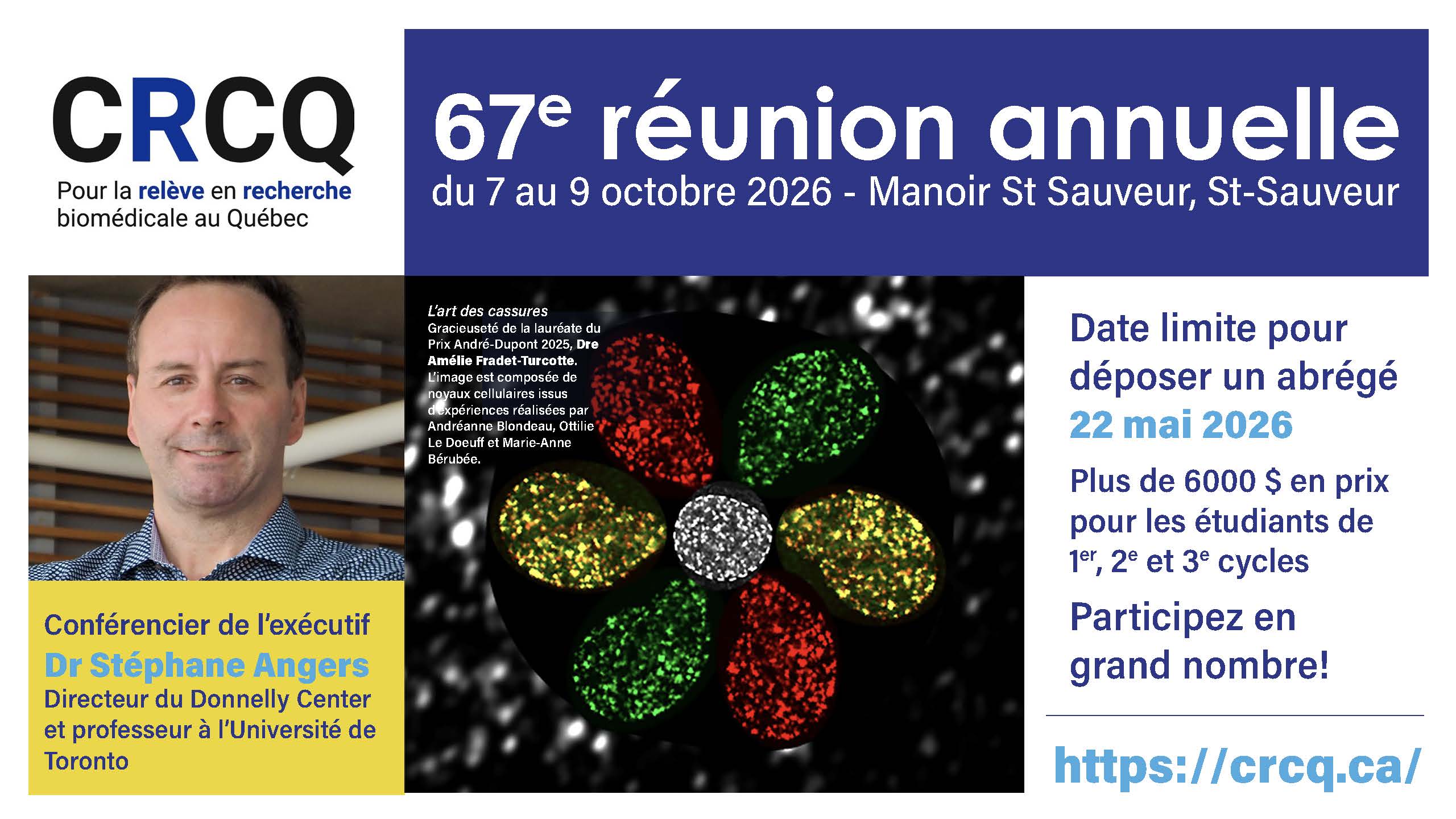Chères et chers collègues, C’est avec grand plaisir que nous vous invitons à la 67e réunion annuelle du CRCQ qui se tiendra du 7 au 9 octobre 2026 au [Suite…]